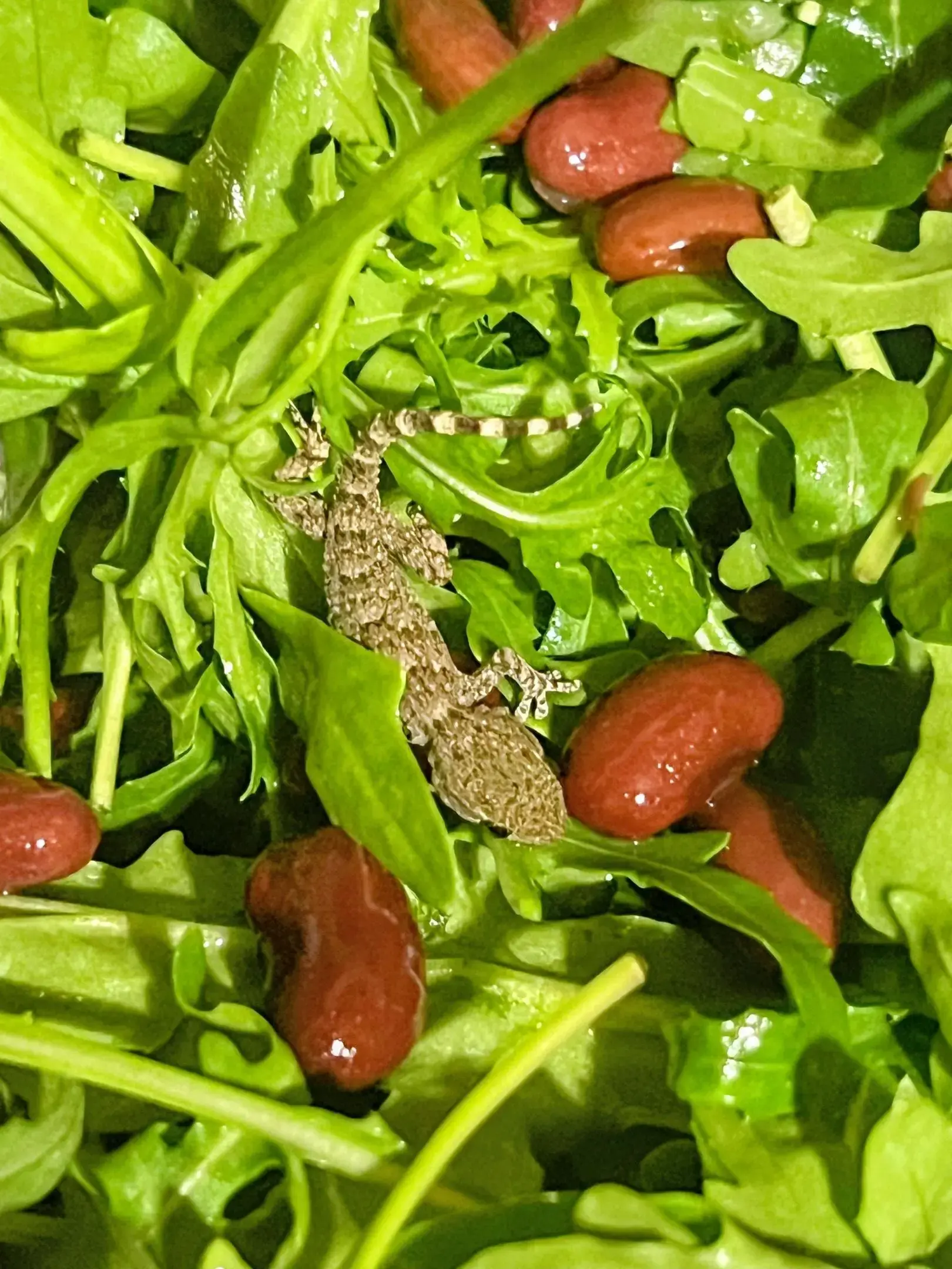 Niecodzienne odkrycie na Lubelszczyźnie. Mieszkanka regionu, przygotowując sałatkę z fasolą, zauważyła, że w paczce rukoli coś się porusza. Jak się okazało, wśród listków ukrywał się żywy gekon murowy (Tarentola mauritanica) — gatunek występujący w krajach śródziemnomorskich.